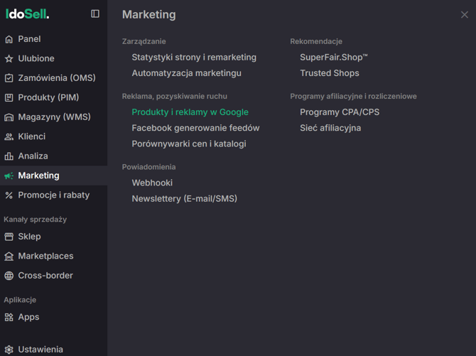 - Zaloguj się do panelu administracyjnego IdoSell.