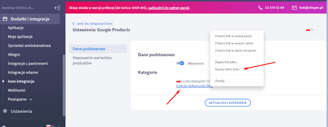- Pobierz link pliku XML, który wykorzystujesz do reklam Google PLA.