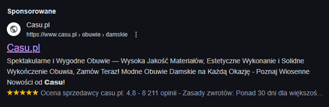 Wyobraź sobie, że Twoje reklamy w wyszukiwarce Google wyróżniają się złotymi gwiazdkami, natychmiast przyciągając wzrok i budując zaufanie, jeszcze zanim użytkownik kliknie w link. To właśnie robią opinie o sprzedawcy (Seller Ratings)!