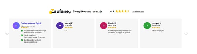 Zaufane.pl oferuje kilka typów widgetów, które można dopasować do różnych miejsc na stronie i potrzeb prezentacji opinii: