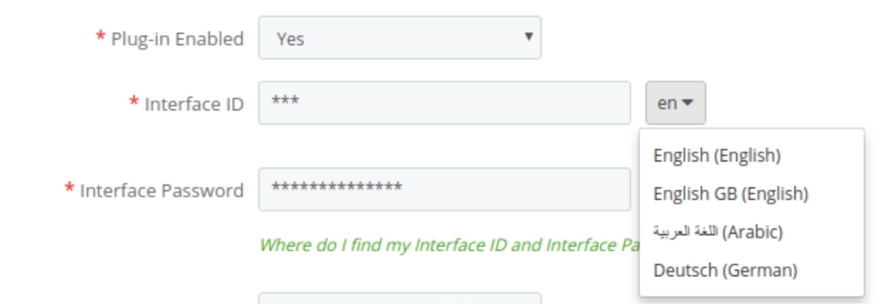 - „Interface password” i „Interface ID” – wartości te dostarczy Ci nasz zespół. Powinny być wpisane dla każdego języka, w którym planujesz zbierać opinie.