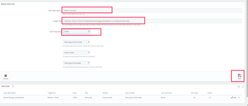 - Dodanie zadania Cron przez Cron Task Manager (w panelu PrestaShop)