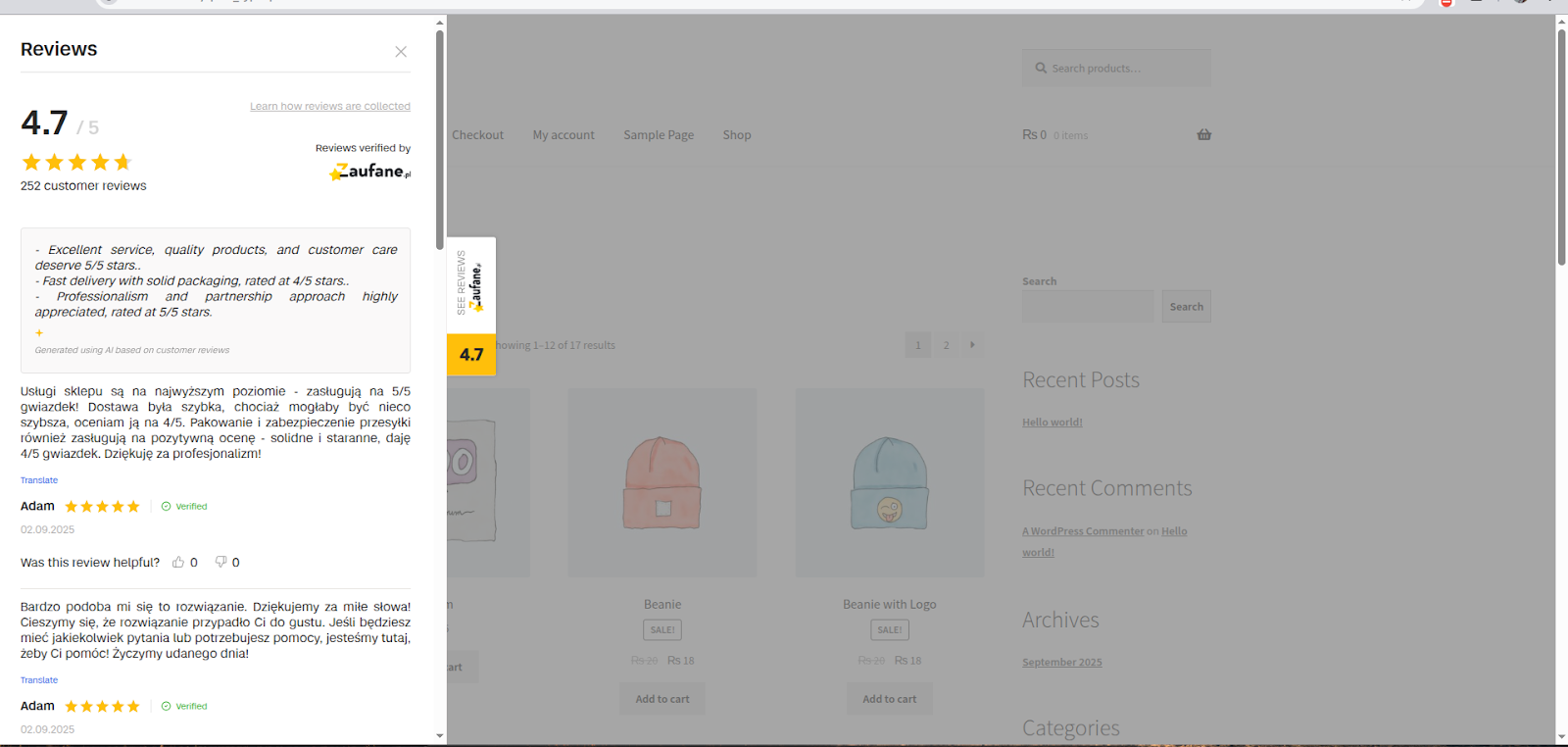 Aby zebrane opinie były dostępne na Twojej stronie internetowej należy zainstalować widget. Galerii Widgetów dostępna jest pod wskazanym linkiem: https://info.zaufane.pl/widgety-zaufane_pl
