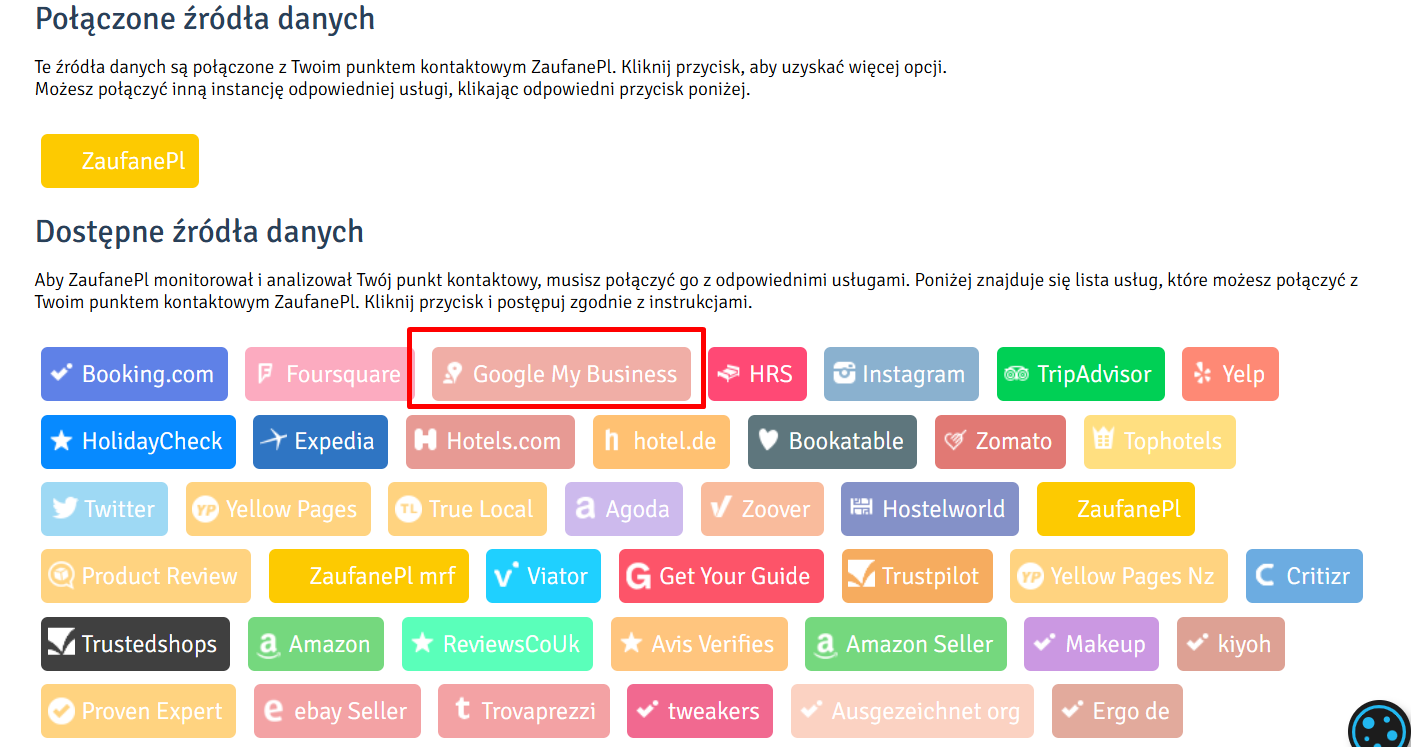 Zaufane.pl obsługuje bezpośrednią integrację z Google Moja Firma (GMB) . Bezpiecznie logując się do swojego konta GMB, możesz bez wysiłku połączyć się i pobrać autentyczne recenzje z lokalizacji swojej firmy. W tym przewodniku omówiono: Jak połączyć konto GMB? Dlaczego integracja oparta na logowaniu jest bardziej niezawodna niż scraping? Rozwiązywanie problemów i często zadawane pytania.