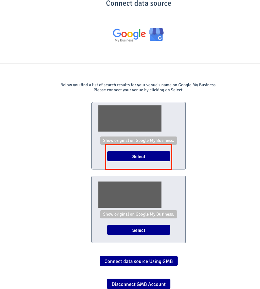 - Kliknij opcję Połącz źródło danych za pomocą GMB