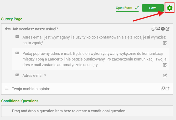 7. Po zapisaniu zmian Potencjometr jest włączony. Gdy otworzymy testową ankietę przez Open Form widzimy ankietę z aktywowanym potencjometrem, który od teraz będzie widoczny również dla kupujących: