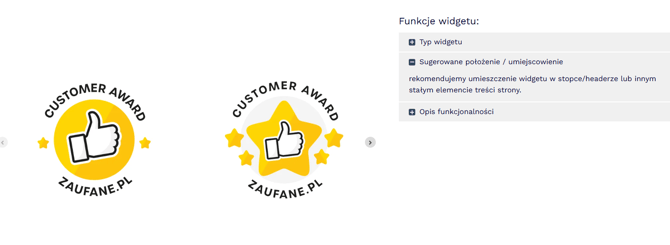 Ważna informacja: Tworzenie i modyfikowanie widżetów nie powinno być wykonywane samodzielnie przez klienta. Zespół Zaufane.pl zajmuje się projektowaniem i wdrażaniem widżetów zgodnie z potrzebami klienta oraz strukturą sklepu. Jeśli chcesz utworzyć nowy widżet, zmienić wygląd istniejącego lub wprowadzić inne modyfikacje, skontaktuj się ze swoim opiekunem technicznym w Zaufane.pl. Specjalista bezpiecznie przeprowadzi Cię przez cały proces konfiguracji, dzięki czemu wdrożenie będzie poprawne i dopasowane do Twojej strony.
