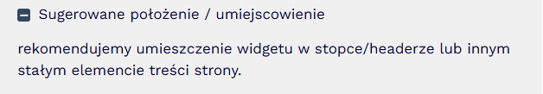 - Rekomendowane umiejscowienie – najlepsze praktyki implementacji podpowiadające, gdzie na stronie warto umieścić dany widżet, aby był najbardziej efektywny i widoczny. Zaufane.pl dzieli się sugestiami opartymi na doświadczeniu – przykładowo widżet sprzedawcy nr 0 (Rekomi Seal) pełniący rolę „gwarancji zaufania” zaleca się umieścić w stopce lub innym stałym elemencie strony, dzięki czemu będzie widoczny na każdej podstronie. Z kolei widżety z ocenami produktów warto umieszczać wysoko na karcie produktu, aby użytkownik od razu je zobaczył.