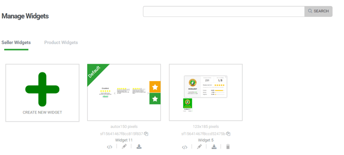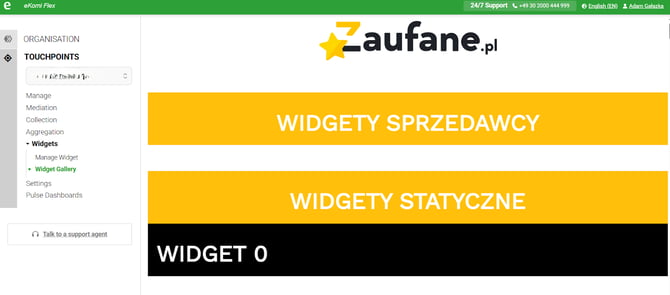 - Widżety produktowe – widgety służące do wyświetlania opinii o konkretnych produktach na stronie produktu. Tych widżetów jest obecnie 6 typów. (Dla przykładu, widżet produktowy nr 0 nosi nazwę Mini Stars – jest to mały moduł z gwiazdkami, którego rekomendowane miejsce to górna część strony produktu obok nazwy produktu, aby natychmiast pokazać ocenę).