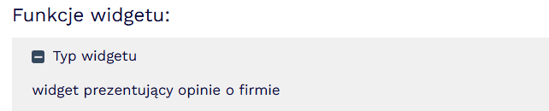 - Typ widżetu: Na górze strony zobaczysz informację, czy wybrany widżet dotyczy opinii o sprzedawcy czy o produkcie (pole informacyjne, którego nie trzeba edytować).